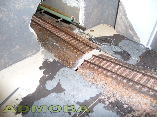 Am Anfang neuer Planungen stand der Übergang zum Flur in Richtung Übergabebahnhof Gerbisbach. Hier sehen Sie den ersten Wanddurchbruch mit eingebauter Gleiszunge.