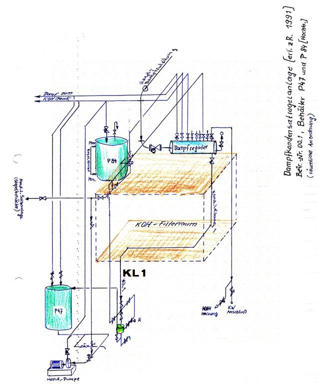 Feine Details und ein Lageplan der Kondensatbehälter